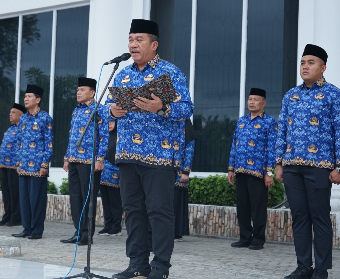 Terlihat Sekretaris Daerah Kabupaten Asahan, Para Asisten, Staf Ahli Bupati Asahan, OPD dan ASN di Lingkungan Pemerintah Kabupaten Asahan ikuti upacara Hari Kesadaran Nasional dengan begitu khitmad.
