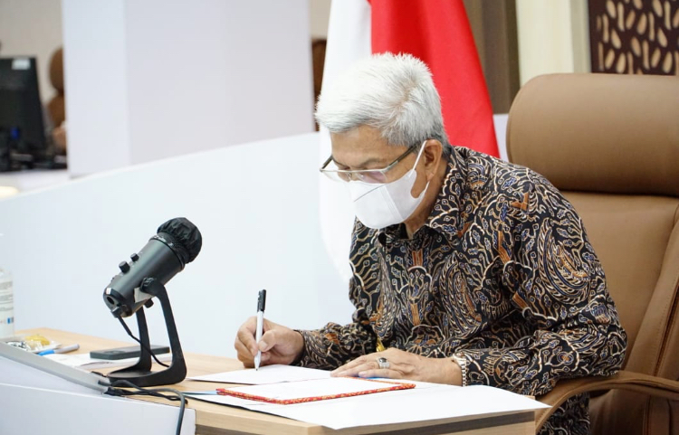 Wakil Gubernur Sumatera Selatan H. Mawardi Yahya (MY) mengikuti Rapat Koordinasi (Rakor) tindak lanjut PP No. 5 ahun 2021 tentang Penyelenggaraan Perizinan Berusaha Berbasis Resiko dan PP No. 6 Tahun 2021 tentang Penyelenggaraan Perizinan Berusaha di Daerah terkait Kesiapan Online Single Submission (OSS) yang digelar secara virtual di Command Center Kantor Gubernur, Jumat (28/5).