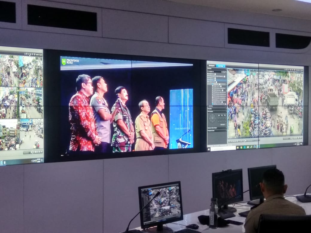 Wakapolda Sumsel, Brigjen Pol Rudi Setiawan dan para Pejabat Utama Polda Sumsel, menyaksikan peluncuran Aplikasi ‘Lancang Kuning Nusantara’ di Pekanbaru oleh Kapolri, Jenderal Polisi Idham Aziz dan Panglima TNI Marsekal Hadi Tjahyanto melalui saluran video live di gedung Command Centre Mapolda Sumsel, Senin (09/03/2020).